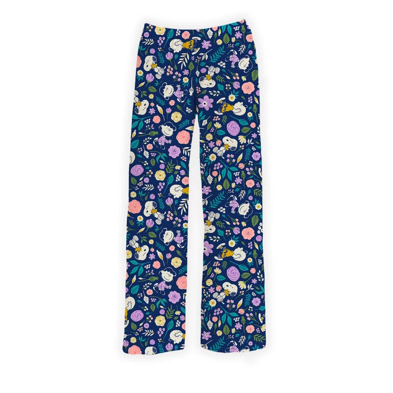 - Brief Insanity navy blue lounge pants feature a fun floral design with the whole Peanuts gang.