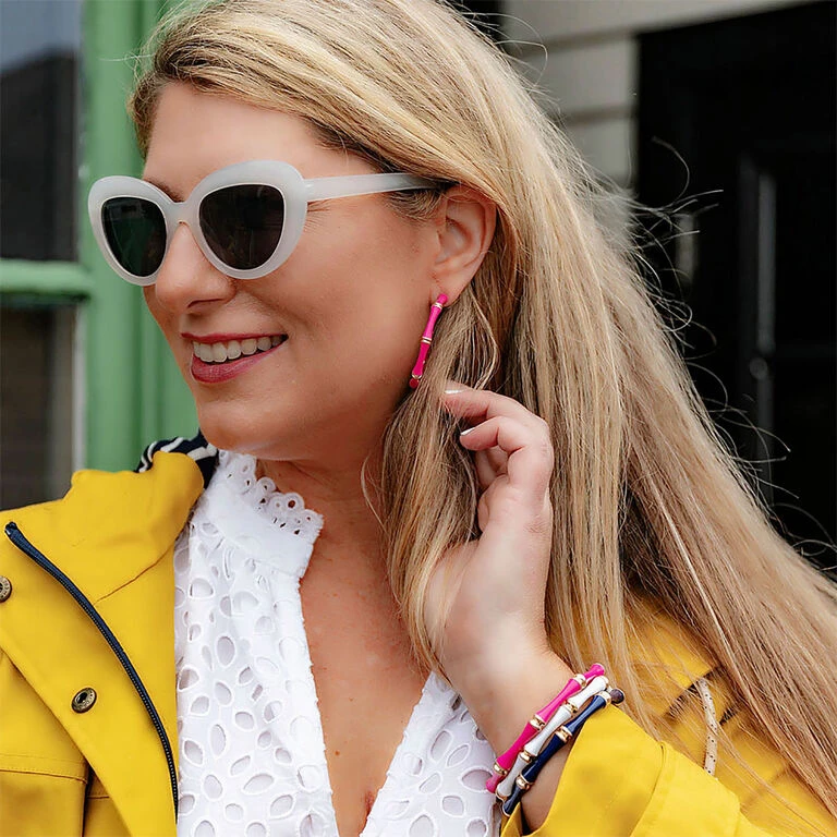 Dial up your outfit with these fun and fashionable hoop earrings in bright pink with gold accents. The perfect accessory to punch up your outfit, these earrings are lightweight and easy to mix and match with your favorite outfits! Pair with your own stylish ensembles or give to a friend for a fun pick-me-up or birthday surprise.