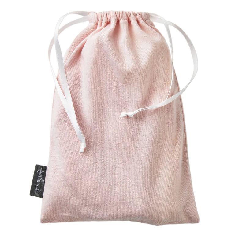 - Infant gift set includes pink and creamy white long sleeve bodysuit with embroidered and printed message and coordinating knit hat in cloth drawstring bag.