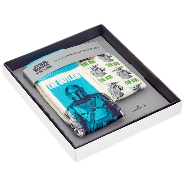 - Star Wars: The Mandalorian novelty crew socks set includes 1 pair sized for an adult and 1 pair sized for a child.