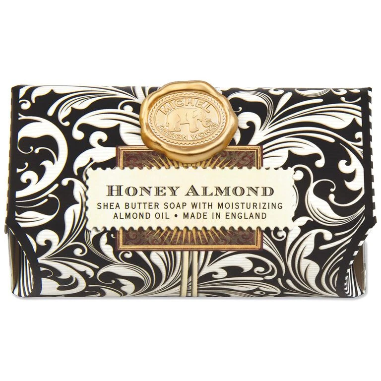 The Michel Design Works Honey Almond bath soap is scented with almond, cherry, vanilla and honey, and contains only the finest of ingredients, including pure vegetable palm oil, glycerin and rich, moisturizing shea butter. Each bar is triple milled to distribute color and fragrance evenly and to make the soap silky smooth and long lasting.