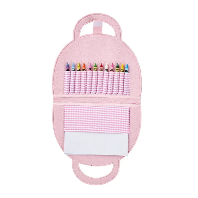 - Mud Pie rainbow felt folio contains crayons and drawing pad.