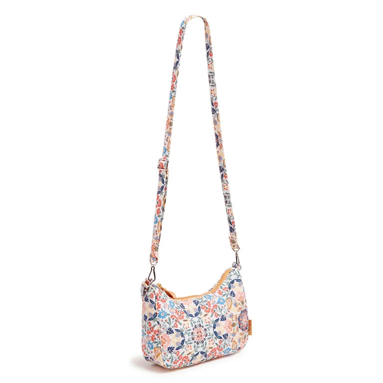 Going hands-free is as simple as 1-2-3! If traveling light and staying organized is just your style, this Vera Bradley crossbody is your bag. Consciously crafted with recycled cotton in a pretty multicolor floral print, this adjustable-length purse is a must-have for every woman. Great for running errands and everyday use, this streamlined design stays close to your body and is equipped with custom compartments and pockets.